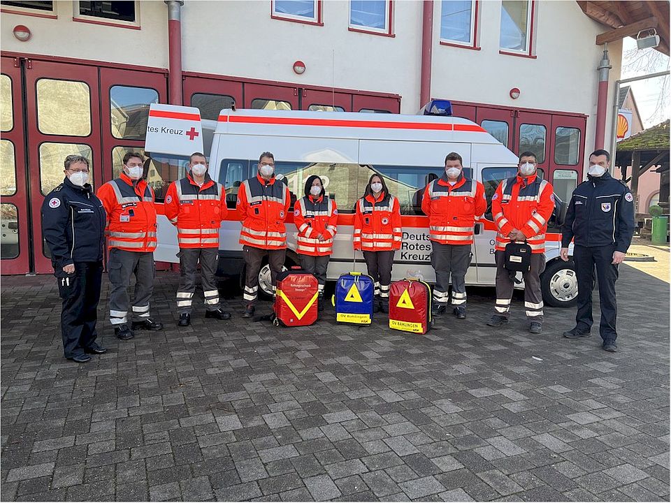 Der DRK-Ortsverein Reute ist das „jüngste Kind“ der Rotkreuzfamilie im Landkreis Emmendingen. Er wurde erst im vergangenen Jahr aus der Taufe gehoben. Nur zehn Monate nach seiner Gründung wurde das erste Ziel schon erreicht: Die Indienststellung einer HvO-Gruppe. Insgesamt 16 Einsatzkräfte stellen sich dafür zur Verfügung. Einige von ihnen waren bisher schon in der HvO-Gruppe des benachbarten DRK-Ortsvereins Vörstetten aktiv. Dieser wird die Kameraden in Reute auch weiterhin logistisch und praktisch unterstützen. Neben der Ausbildung für den HvO-Dienst hat der junge Ortsverein auch mächtig investiert: So müssen zum Beispiel die Einsatzkleidung, die Notfallausrüstung zur Patientenversorgung, Funkgeräte und Funkmeldeempfänger selbst finanziert werden. Öffentliche Zuschüsse gibt es dafür keine. Deshalb ist der noch junge Verein, der bislang nicht zuletzt wegen der Corona-Pandemie noch keine Veranstaltungen zur Auffüllung der Vereinskasse durchführen konnte, auf Spenden angewiesen (Spendenkonto: Raiffeisenbank im Breisgau, DE 43 6806 4222 0005 0700 15).