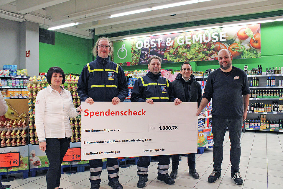 Mit den Worten „Wir freuen uns sehr, wenn wir Vereine in der Umgebung unterstützen können“ übergab Dominik Ziebold den Spendenscheck. Auch Florian Blaicher, stellvertretender Geschäftsführer des DRK-Kreisverbandes Emmendingen, freute sich sehr über das soziale Engagement vom Kaufland: „Die Notfalldarstellung im Kreis Emmendingen ist sehr gefragt. Oft kommen auch Anfragen von benachbarten Kreisen, die Unterstützung brauchen. Mit neuen Einsatzjacken sind sie dann gut ausgerüstet.“