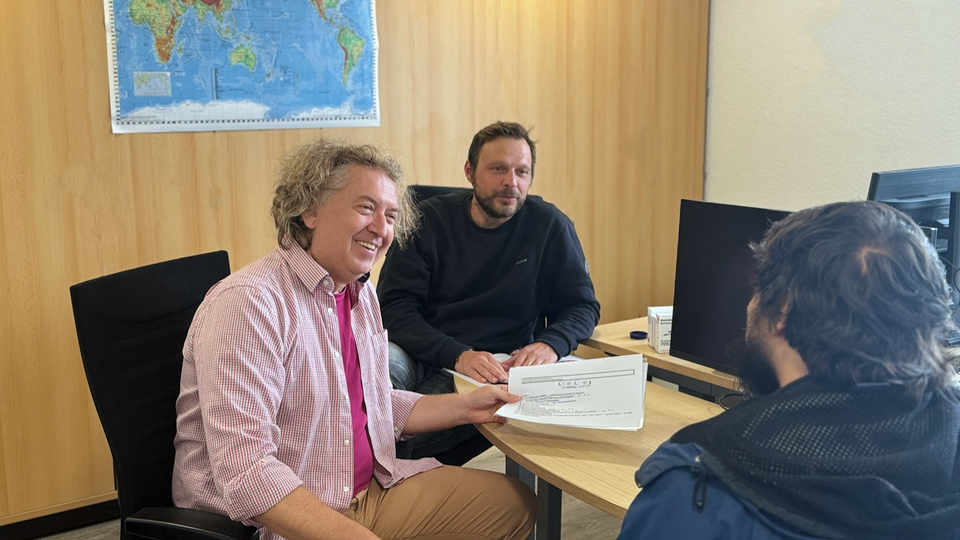 Bild: Rosano Cholakov (links) und Christoph Götz (mitte) in der Rückkehrberatung